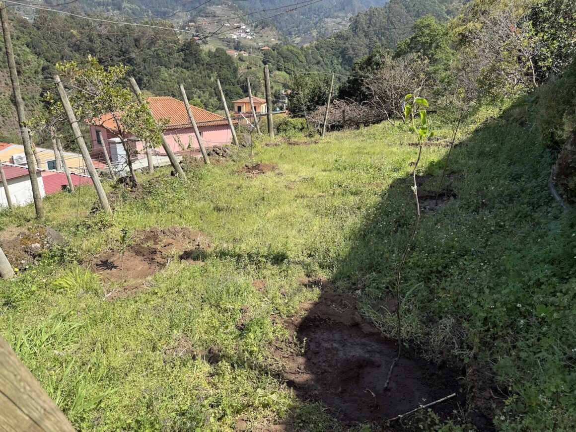 Entretanto, as fruteiras já plantadas na semana passada, encontram-se bem e de boa saúde, sendo que hoje a água de rega lembrou-se delas.