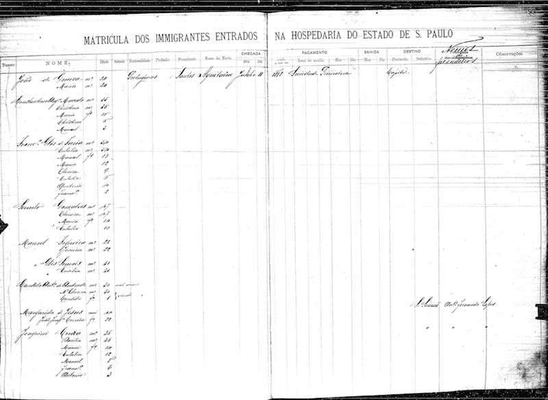 Da cidade portuária partiram em direção à capital do estado de São Paulo, tendo sido recebido na Hospedaria do Imigrante onde os imigrantes eram acolhidos por períodos temporários, regra geral oito dias, antes de partirem para os seus destinos.